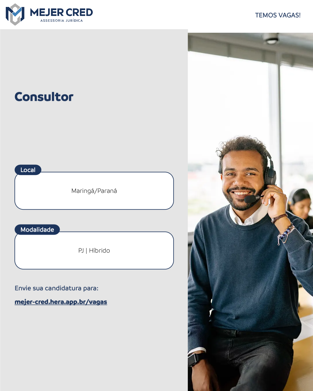 Grupo Mejer Cred, o consultor ideal de vocês não é só vendedor — é alguém que sabe fazer atendimento consultivo, entender a dor do cliente e conduzir com segurança até o fechamento.